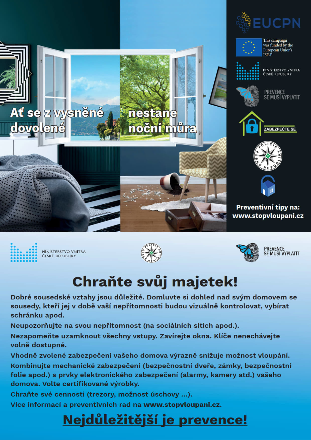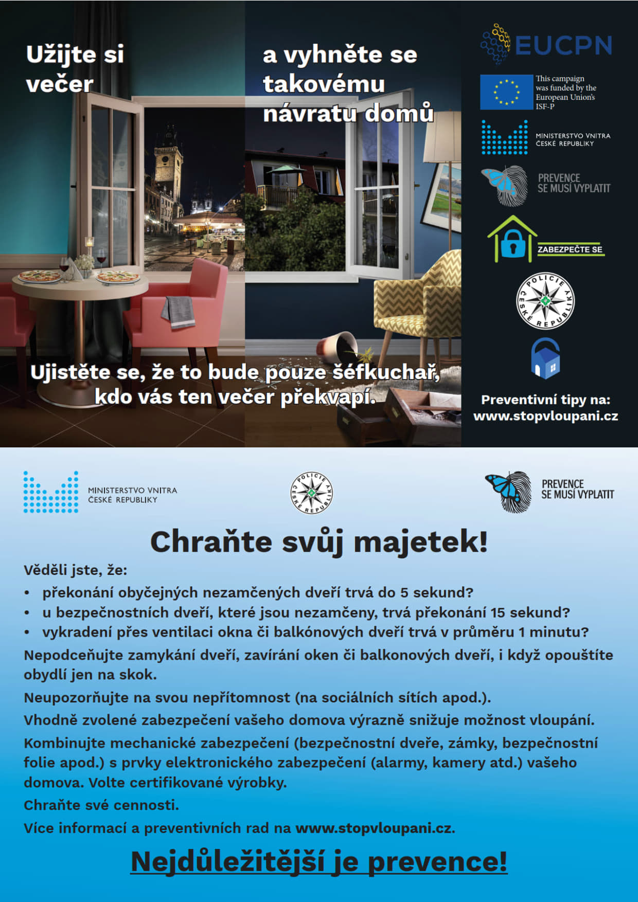 Ministerstvo vnitra České republiky informuje: Prevence proti vloupání se rozhodně vyplatí.